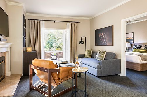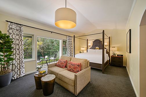 Nestled beneath towering sycamore and eucalyptus trees, our historic resort is your sanctuary in wine country. Relax in elegant rooms and suites with plush linens, elevated touches, and serene surroundings. Step onto your private balcony or patio and let nature set the tone.
