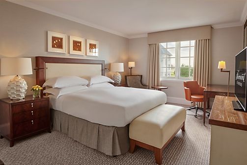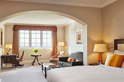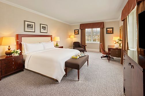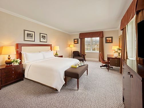 Fairmont rooms feature, one king bed, bathroom with separate shower and bathtub and enhanced views over the grounds and golf courses.