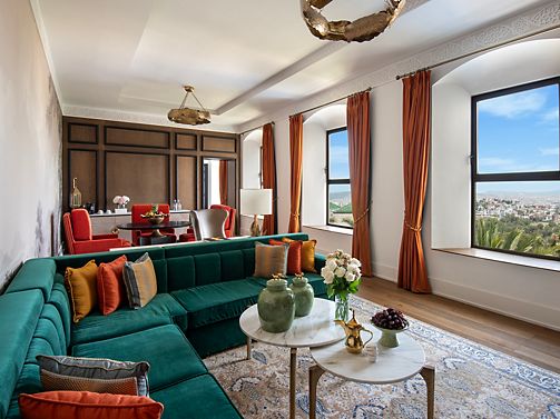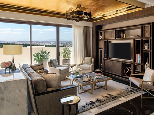 One-bedroom suite on the top floor with stunning views of the city. This suite is elegantly appointed to ensure a perfect comfort and privacy with contemporary room design and a touch of Arab-Andalusian architecture and a luxurious marble bathroom.