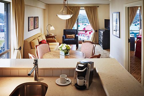 Largest suites in the hotel, fully equipped kitchen and dining area, 2 full bathrooms, living room area with sofa bed, corner rooms with stunning views of Tremblant