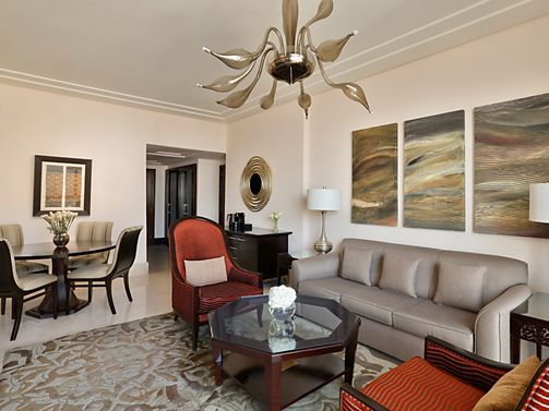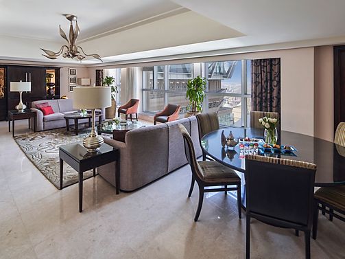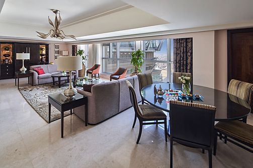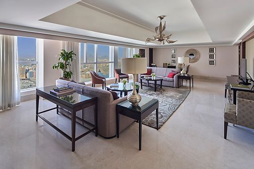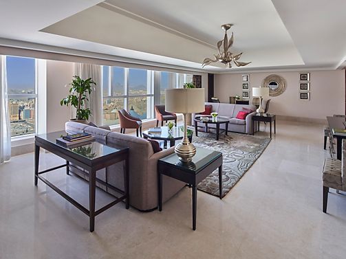 Fairmont Gold Executive Suite City, 138m², 2 Rooms, 1 King size bed, 2 Single size beds, Living Room, Two Full Baths, 1 Guest toilet, One Sofa Bed, In-Suite Mini-bar, In-Suite Speakers for Haram Audio, Internet Access, Non-Smoking. Luxurious and spacious,
