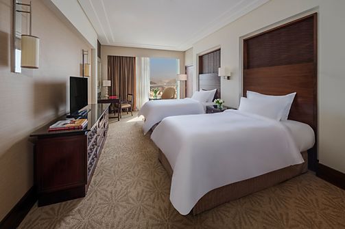 Fairmont Room Twin City 42m², Room with Twin Bed, Full Bath, 32" LCD/TV, Coffee/Tea Refreshment Center, In-room Speakers for Haram Audio, Non-Smoking. Luxurious amenities and exceptional comfort ensure a memorable stay. Perfect for relaxation and comfort.