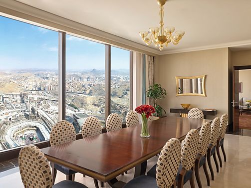 Presidential Suite Kaaba 150 m², Room with king size bed, Separated living and dining room, office area and prayer area, Equipped kitchenette, 1 Full Bath, 1 Guest toilet, In Suite Speakers for Haram Audio, Internet Access. Luxurious space and ideal .