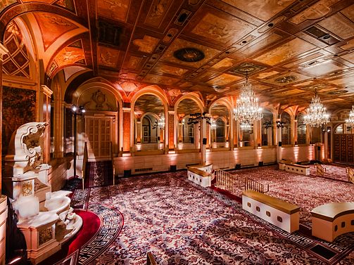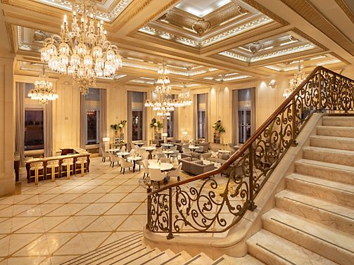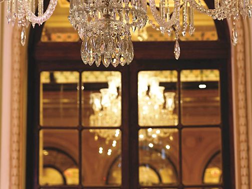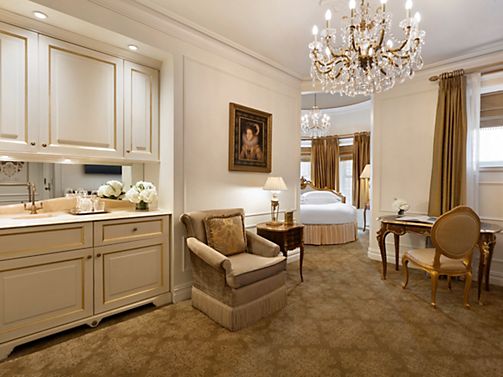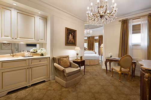 Junior suite in dramatic Art Deco decor of the Jazz Age with dome ceilings, antique mirrors, and glass chandeliers. Includes butler service.